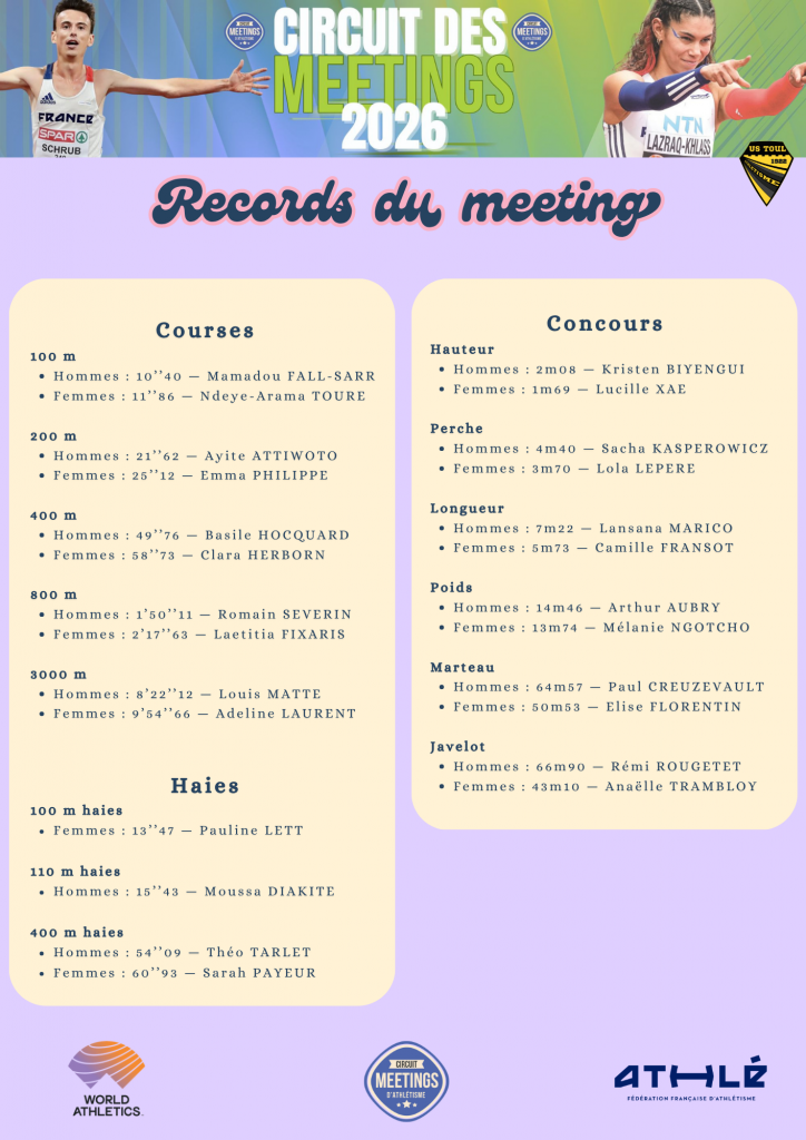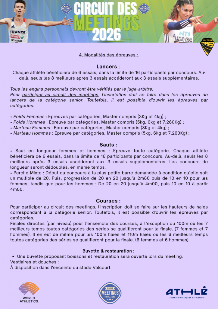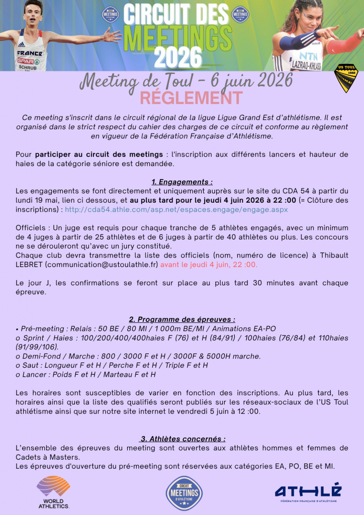 Chaque club doit transmettre la liste des officiels (nom, numéro de licence) Thibault LEBRET – communication@ustoulathle.fr